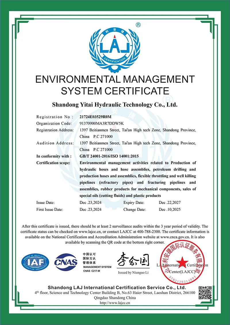 Aplinkosaugos vadybos sistemos sertifikatas (atitinka GB/T24001-2016 ISO14001: 2015)