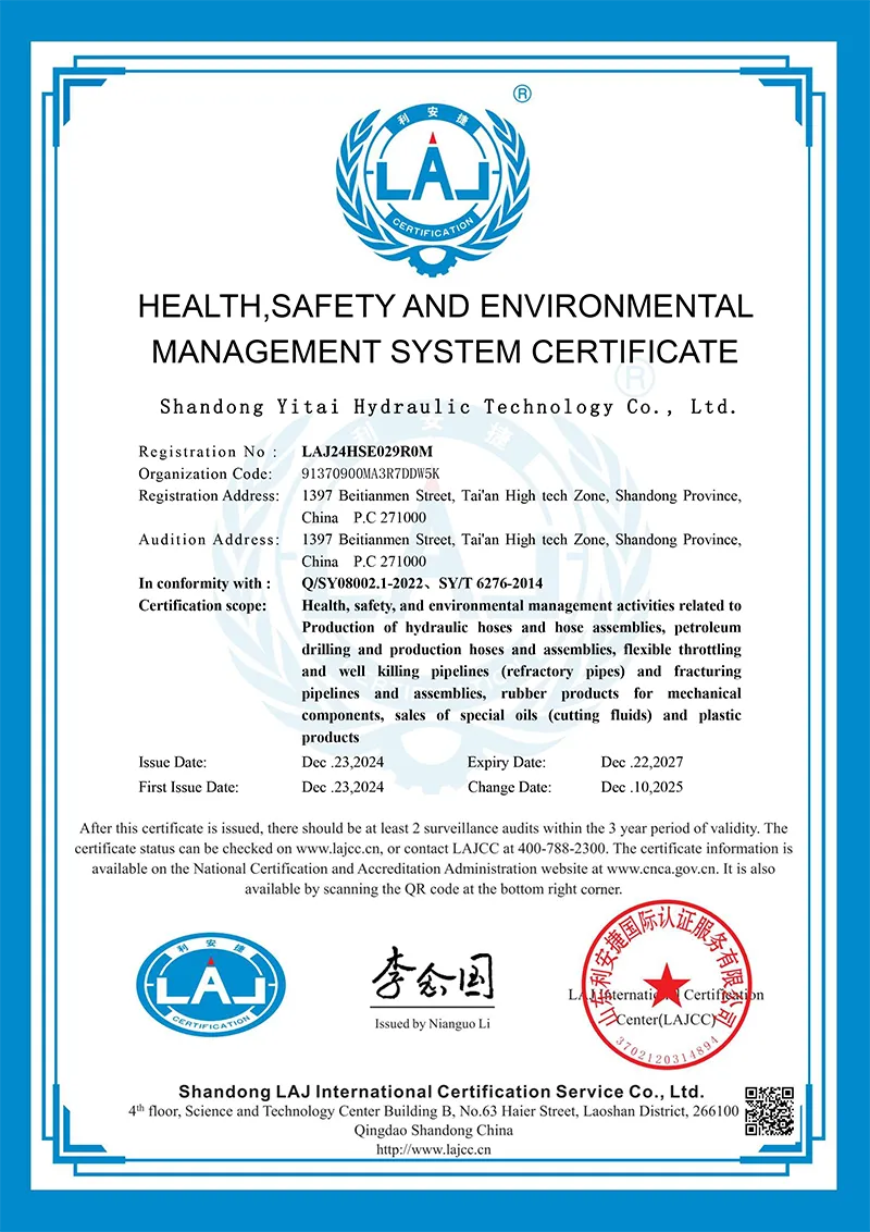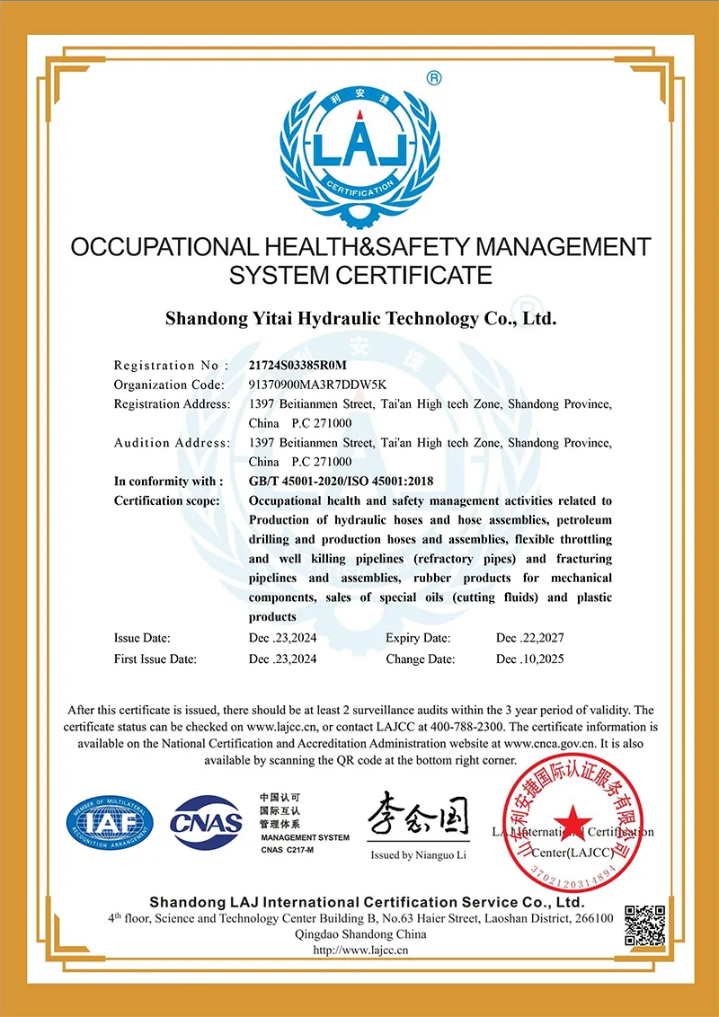 Darbuotojų sveikatos ir saugos valdymo sistemos sertifikatas (atitinka GB/T45001-2020 ISO45001: 2018)