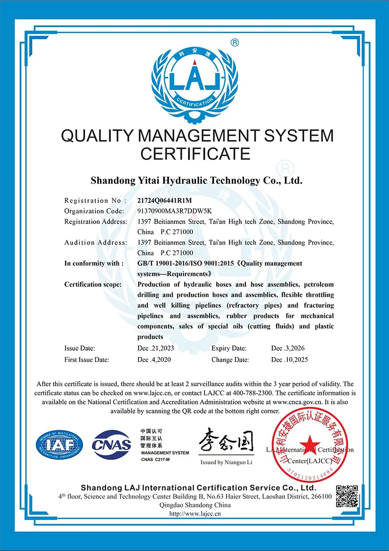 Kokybės vadybos sistemos sertifikatas (atitinka GB/T19001-2016 ISO9001: 2015)
